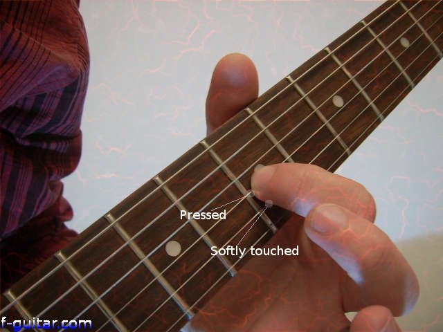 For instance: if you play on the 2nd strings, keep your 1st finger in a way that it touches the 1st string: